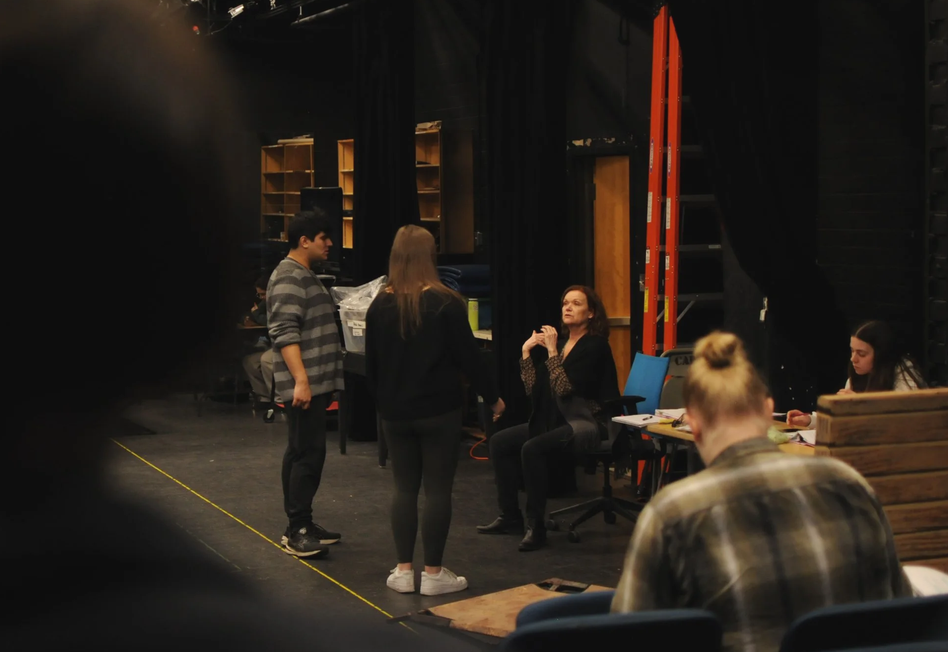 Gillian leading rehearsals for Alice by Heart, which she directed at CapU Theatre in 2025.